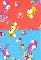 ・コジカA・・・・昭和30~40年代の布団柄風のカラフルなコジカ&小鳥のデザイン